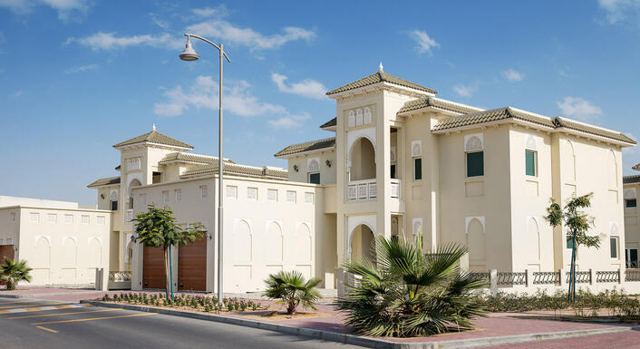 An established family-centric community inspired by desert living and Spanish architecture. This prestigious development features independent villas, a championship golf course, and extensive green spaces for active residents.